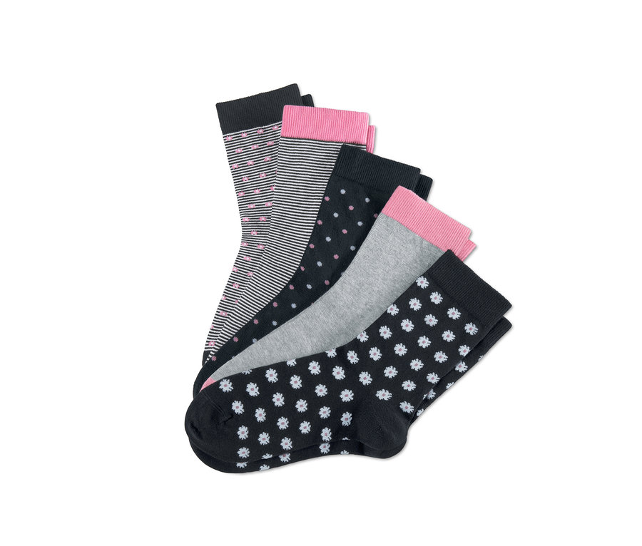 Diese fünf Paar Damensocken setzen mit ihren verschiedenen Looks hübsche Akzente zu jedem Outfit – und mit ihrem hohen Anteil an Bio-Baumwolle liegen sie dabei auch angenehm weich auf der Haut. Ihre Komfortbündchen sorgen für einen perfekten Sitz, ohne dabei einzuschnüren. Die formbeständigen Söckchen sind mit Elasthan gefertigt, was ihnen zusätzlichen Tragekomfort verleiht und sie haben extraflache Zehennähten sowie verstärkte Spitzen und Fersen.