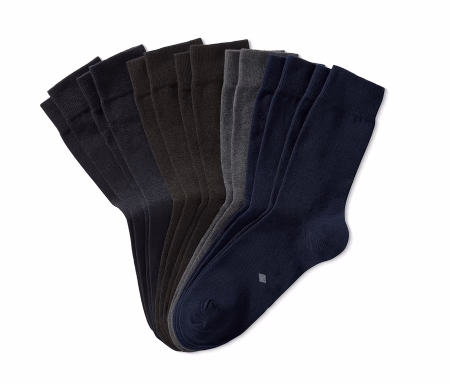 - 2x schwarz, 2x anthrazit meliert, 2x dunkelblau, 1x grau meliert