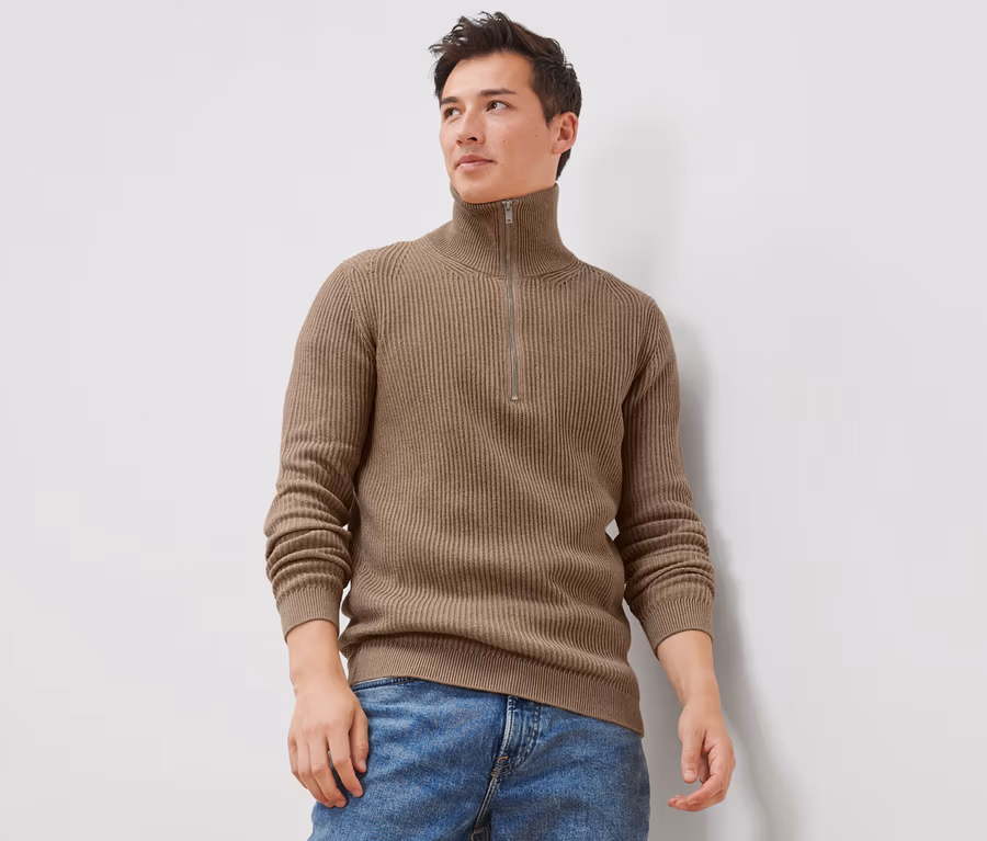 - Formstabile Rippbündchen an Ärmeln, Ausschnitt und Saum
