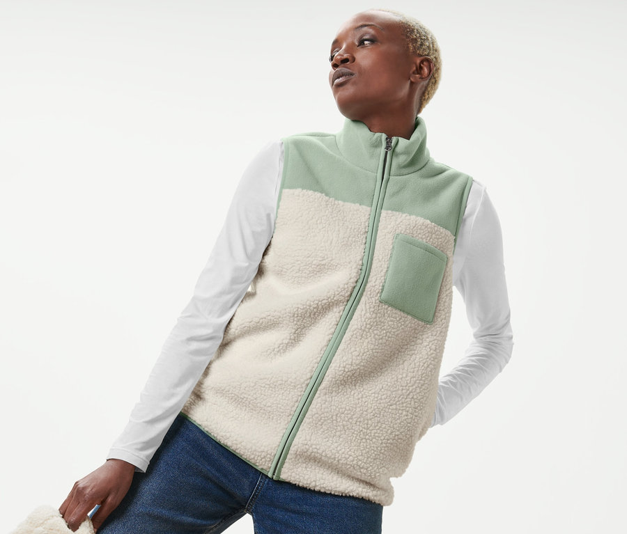 - Weste mit angesamtem Teddy-Fleece und Akzenten in farbigem Fleece
