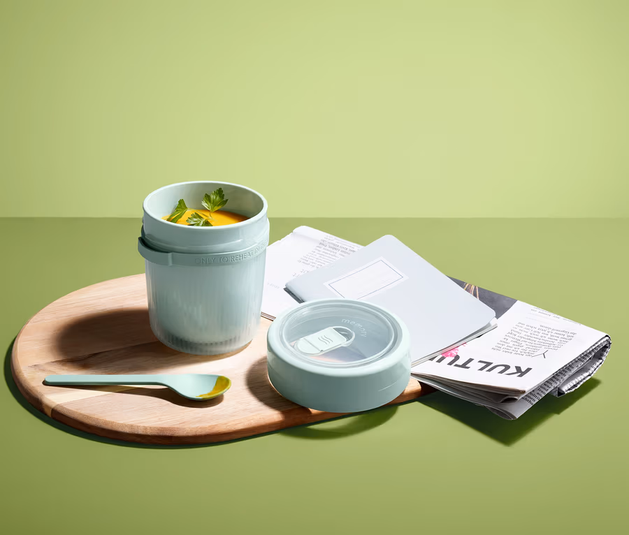 Es lassen sich natürlich auch andere flüssige Lebensmittel oder Getränke wie Joghurt, Kaffee oder Tee damit transportieren und auch kleine Snacks wie Gemüsesticks finden in dem kompakten Behälter Platz. Ein Löffel ist auch dabei und lässt sich praktischerweise direkt am Deckel anklippen.