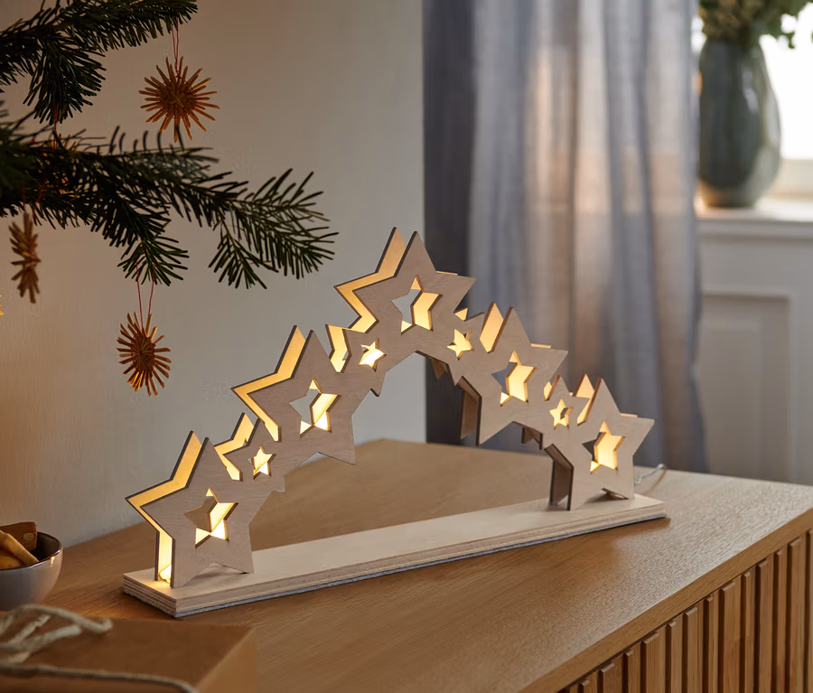 - Indirekt beleuchtete Sternensilhouette aus Holz – Lichtfarbe warmweiß