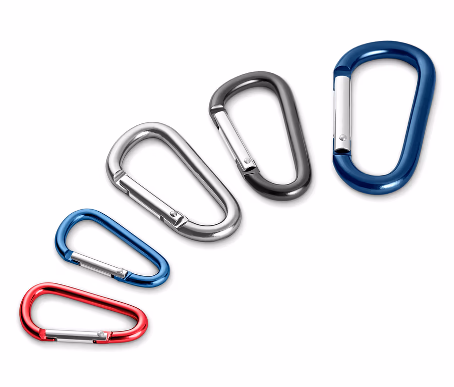 Die Alleskönner für Camping, Wandern und Urlaub: Mit diesen fünf Alu-Karabinerhaken lassen sich die unterschiedlichsten Gegenstände einfach und sicher bündeln und befestigen. Das Karabiner-Set umfasst Haken in drei unterschiedlichen Größen: Die kleinen sind beispielsweise ideal, um Schlüssel in Gürtelschlaufen einzuhaken, und mit dem großen sind etwa Getränkeflaschen am Rucksack befestigt.