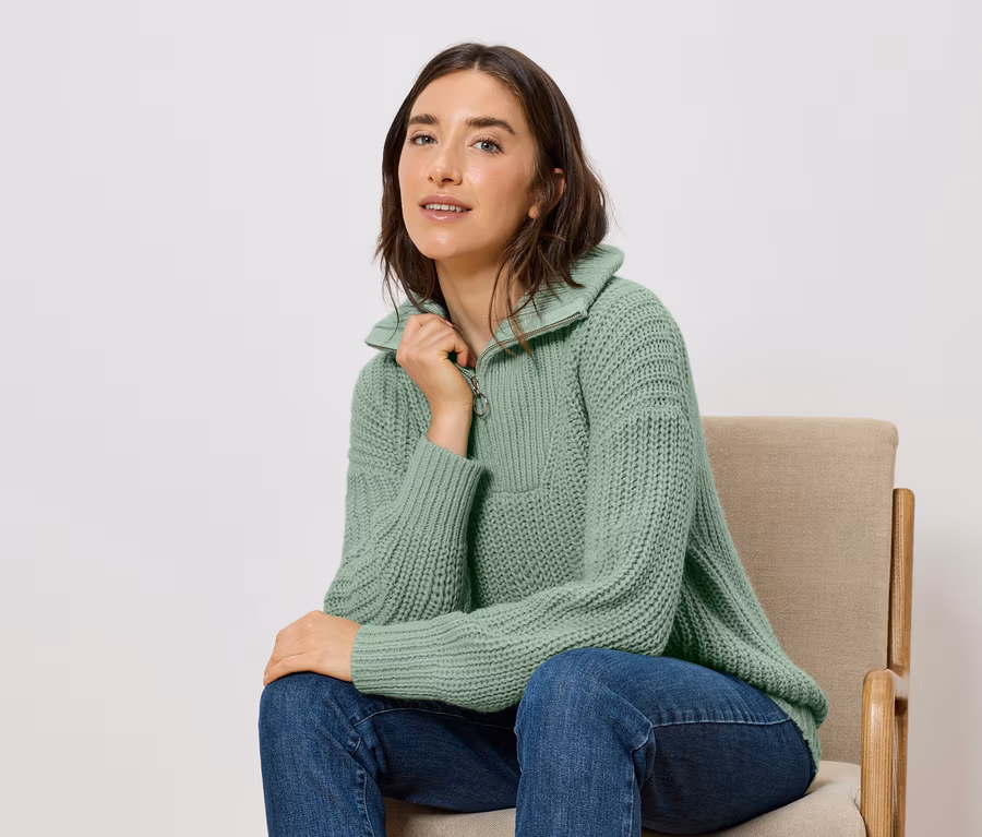 - Hochwertige Strick-Details auf Vorder- und Rückseite