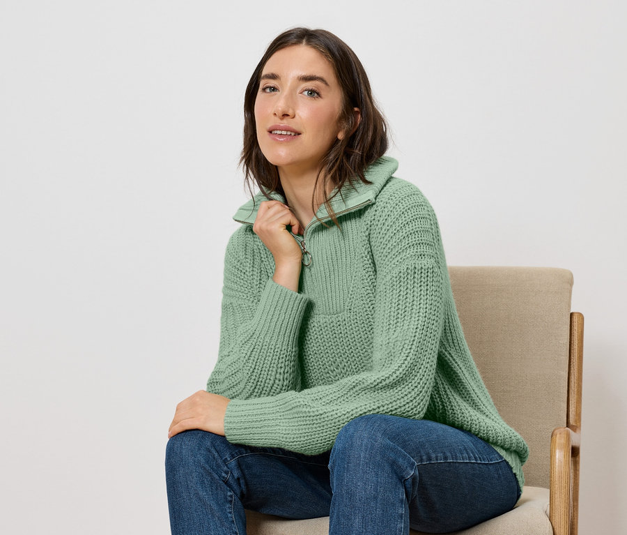 - Hochwertige Strick-Details auf Vorder- und Rückseite