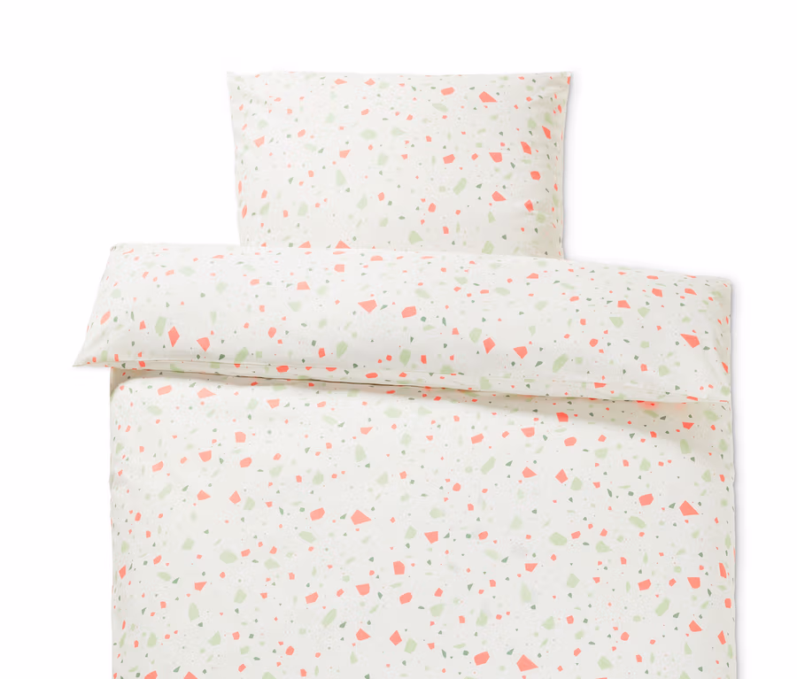 - Weiß mit grünem und rosafarbenem Terrazzo-Alloverprint
