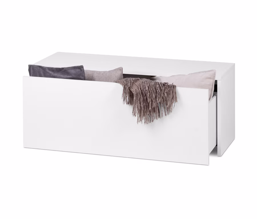 - Schublade der Sitzbank mit Metallauszug und komfortabler Druckpunktöffnung