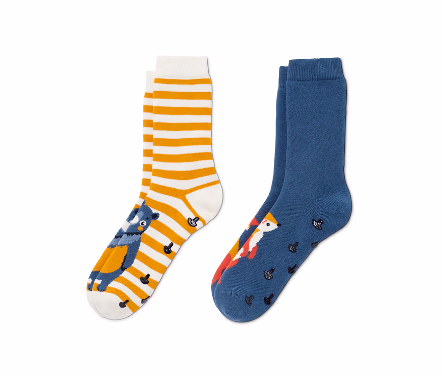 2 Paar Antirutsch-Socken, 1x mit Bär-Motiv, 1x mit Fuchs-Motiv