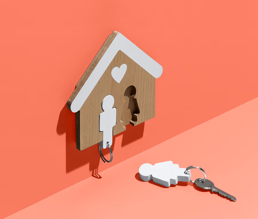 Hier kommt zusammen, was zusammengehört: Mit diesem Schlüsselbrett in Häuschenform hat die Schlüsselsuche ein Ende und zwei Schlüssel bekommen einen ganz besonderen Platz. Mit den beiden Schlüsselanhängerfiguren lassen sie sich direkt in das Brett einsetzen – und Verwechslungen sind auch passé.