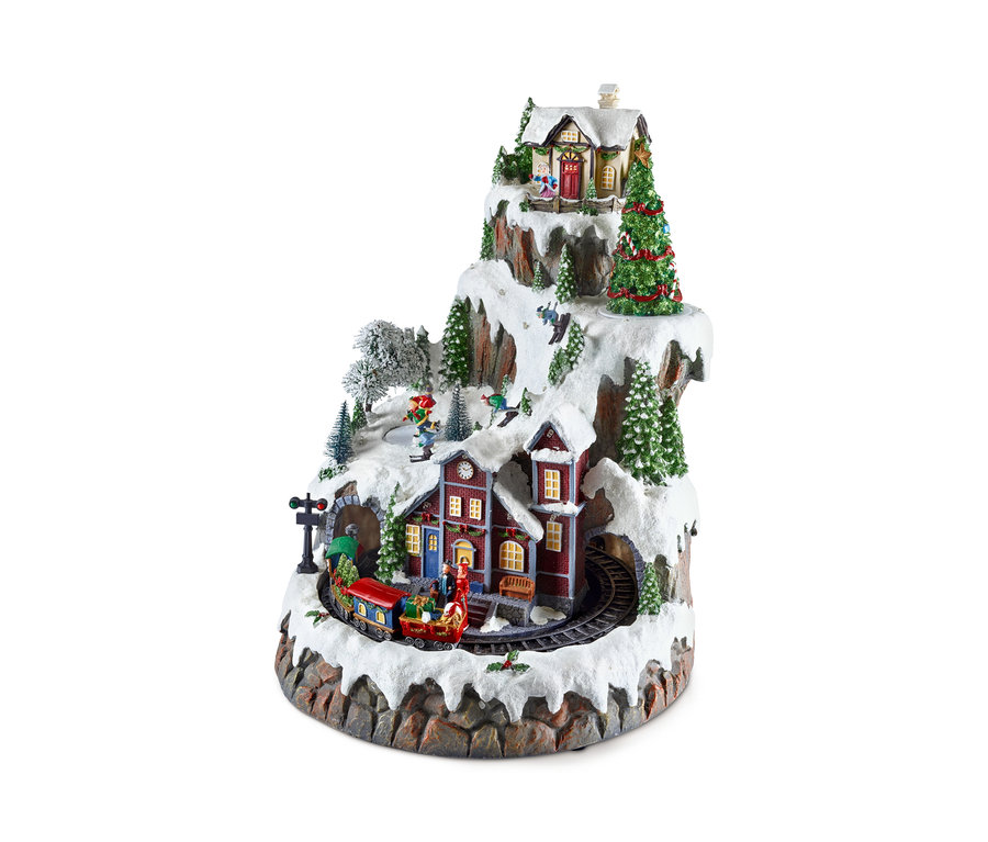- Bewegungselemente: fahrender Zug, drehender Weihnachtsbaum und Eislaufbahn
