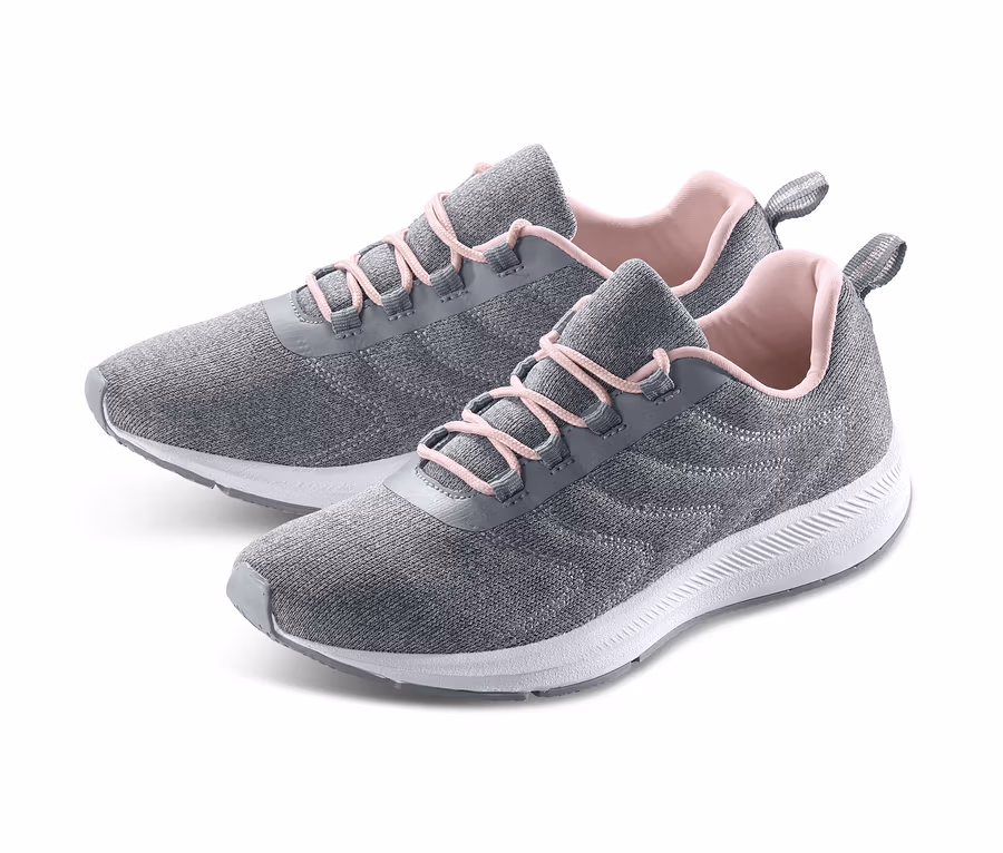 Innen haben die Sportschuhe ein hautfreundliches Textilfutter, das genau wie die Schnürsenkel in Kontrastfarben gestaltet ist. Zusammen mit der dekorativen Stellung und der Schlaufe aus effektvollem Glitzergarn ergeben die vielen Details einen modischen Look. Außerdem erleichtert die Schlaufe an der Ferse der Sneaker das An- sowie Ausziehen. Die rutschhemmende, leicht profilierte Sohle der Fitness- und Laufschuhe sorgt stets für einen guten Halt.