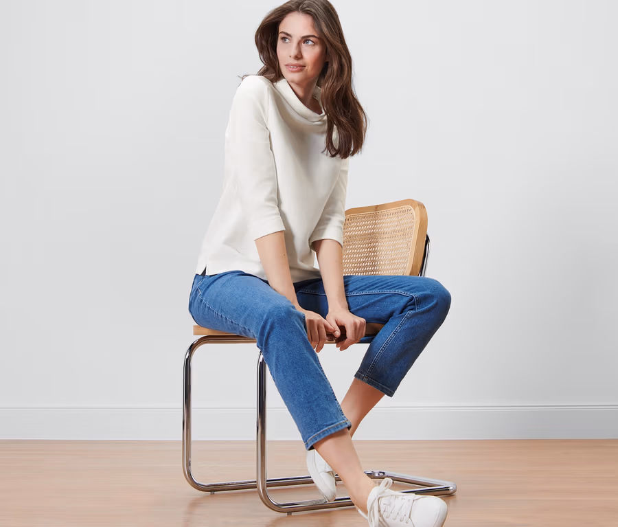 - Kleiner Seitenschlitz an Ärmelabschluss und Saum
