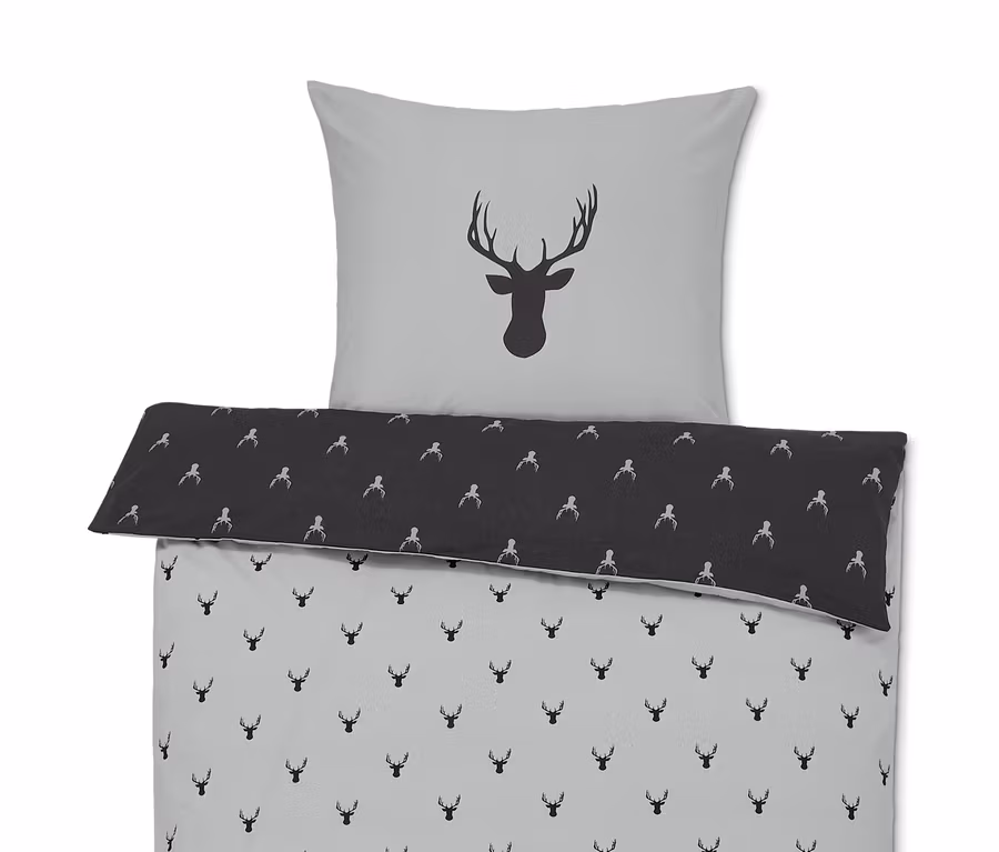 - 1 Seite hellgrau mit dunkelgrauem Hirschprint, 1 Seite dunkelgrau mit hellgrauem Hirschprint