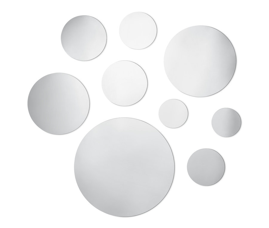 Spiegel, für die man nicht bohren muss: Mit diesen neun selbstklebenden Spiegelstickern sind glatte Oberflächen und zum Beispiel unterschiedliche Tapeten im Nu verziert. Sie machen aus Fliesen, Türen oder Möbeln coole Spiegel und lassen sich vollkommen frei anordnen. Ist die Schutzfolie von der Rückseite entfernt, muss der Sticker lediglich wie gewünscht platziert und festgedrückt werden. Eine weitere Folie schützt das Spiegel-Set auf der Vorderseite vor Beschädigungen. Die Deko-Spiegel sind Licht- sowie UV-beständig, rückstandslos wiederablösbar und wasserbeständig.