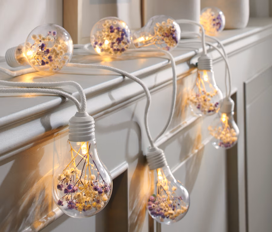 LED-Lichterkette mit Trockenblumen