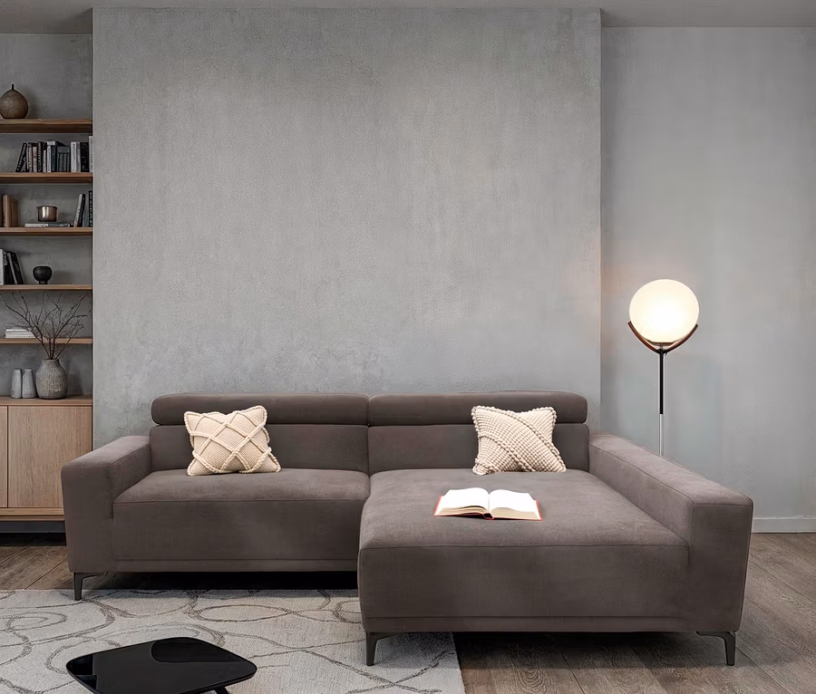 DOMO Ecksofa »Malmö« Longchair rechts, mit Kopfteilverstellung, grau