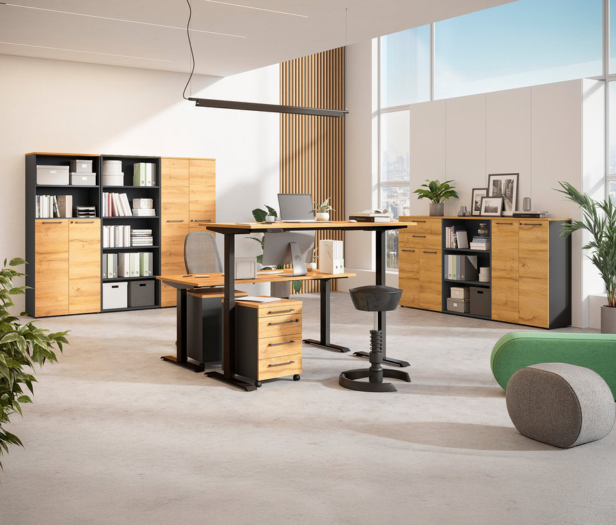 - Tischplatte in Grandson-Eiche-Nachbildung, Gestell in Schwarz