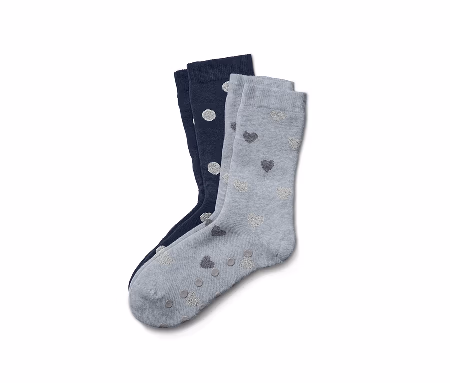 Wohlfühlstrümpfe im Doppelpack: Diese Socken mit extraflacher Zehennaht haben eine angenehm weiche, leicht wärmende Innenseite und ihre Komfortbündchen verhindern ein Einschnüren. Sie sind mit hautsympathischer Bio-Baumwolle gefertigt, Elasthan sorgt für Formbeständigkeit, einen perfekten Sitz und hohen Tragekomfort. Mit ihren zurückhaltenden Farben passen die Socken zu nahezu jedem Outfit, das effektvolle, silberfarben glänzende Garn setzt dabei dezente Akzente.