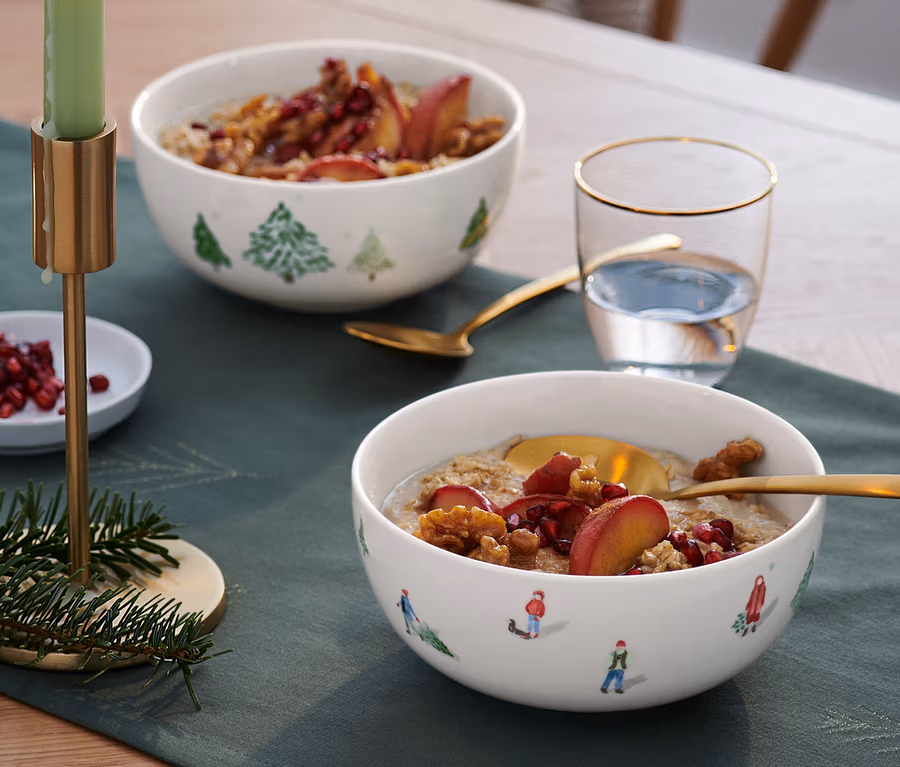 - 1x weiß mit Tannenbaum-Print, 1x weiß mit Spaziergänger-Print