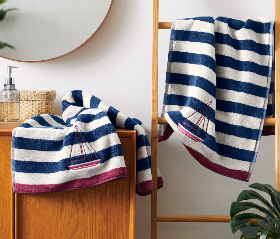 - Mit farblich abgesetzter Bordüre und Segelboot-Stickerei