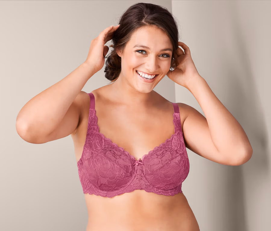 Bequemlichkeit für große Größen: Dieser Bügel-BH hat Cups aus Spitze, die mit Mesh unterlegt sind und mit Formbügeln einen komfortablen Halt bieten – durch die spezielle Schnittführung insbesondere bei großen Größen.