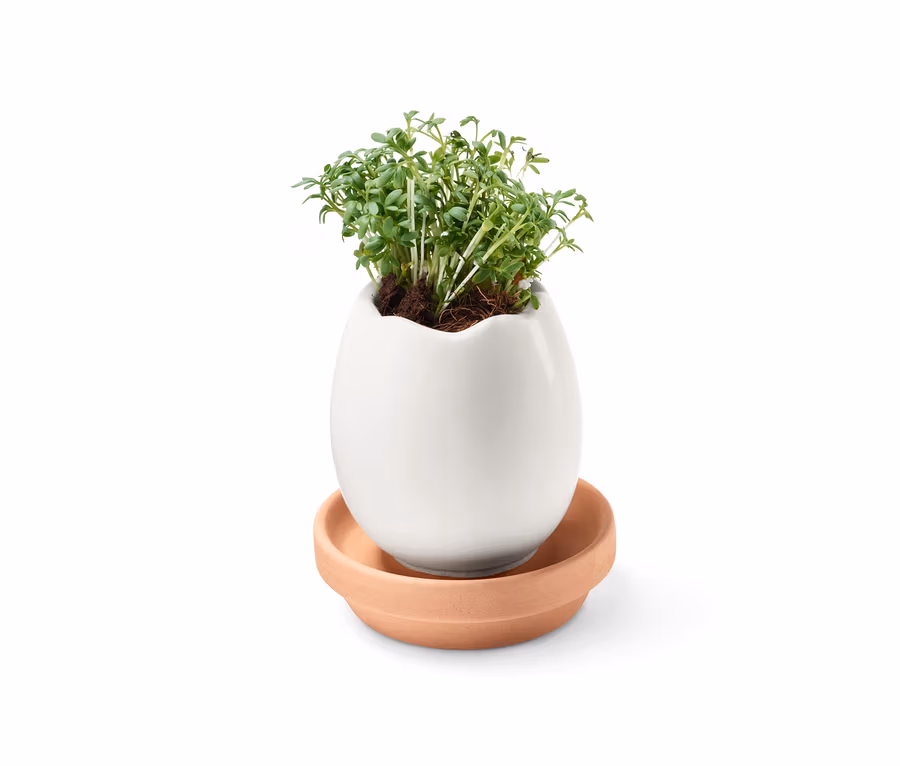 - Inkl. Ei mit Terrakotta-Untertasse, Samen, Erde und Anzuchtanleitung