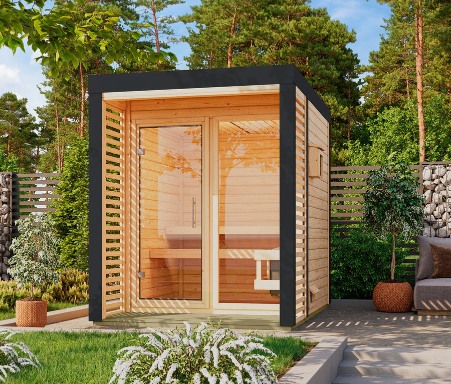 Karibu Saunahaus »Alice 1«, naturfarben-anthrazit