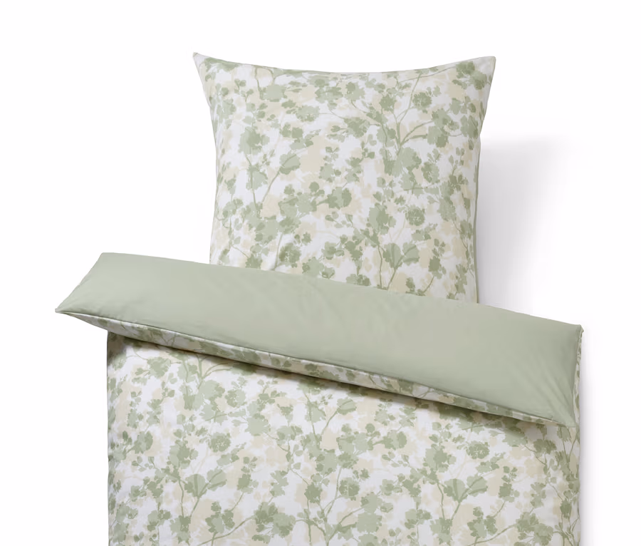 - Eine Seite grün, eine Seite weiß mit grün-beigem Blumenmuster