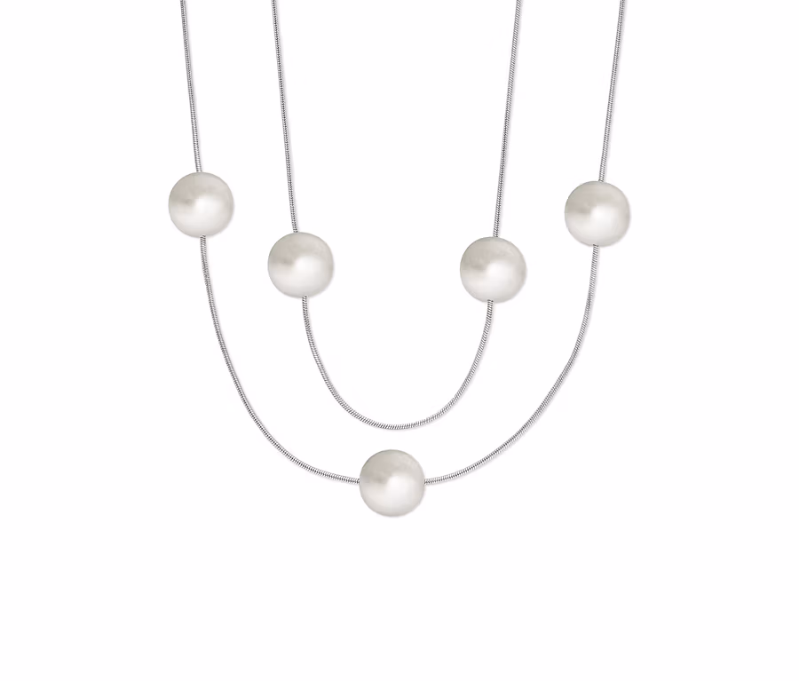 Diese doppelreihige Kette strahlt Leichtigkeit und verspielte Eleganz aus. Mit ihren weißen Glasperlen ist sie zeitlos designt und passt zu nahezu jedem Outfit von freizeitlich bis elegant.