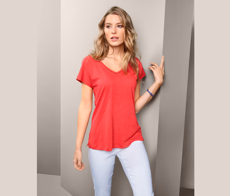 - Sommerliches Damenshirt in weich fließender Leinen-Baumwoll-Qualität