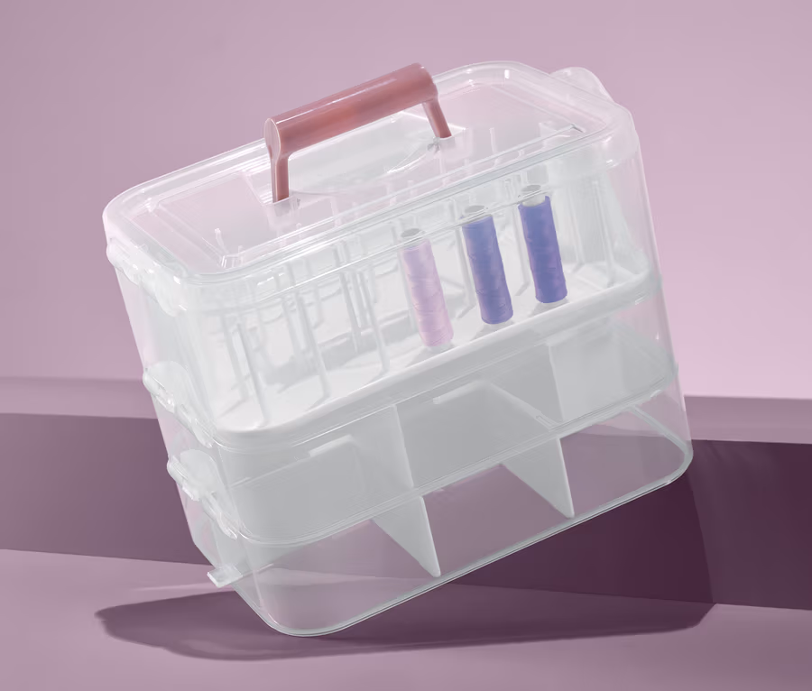 Nähen leicht gemacht: Wer seine Nähnadeln, das Maßband und die Garnrollen gut sortiert aufbewahrt, dem bleibt die langwierige Suche nach den passenden Utensilien erspart. Doch auch für viele andere Gegenstände sind diese Boxen die ideale Aufbewahrungsmöglichkeit. Sie lassen sich einzeln oder in Kombination nutzen, sind stapelbar und können mit seitlichen Clips verschlossen werden.