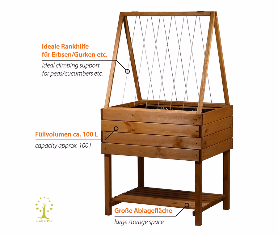 - Das Hochbeet inkl. Gemüse-Spalier ist ideal für die Anzucht von Pflanzen wie Gurken, Tomaten oder Erbsen