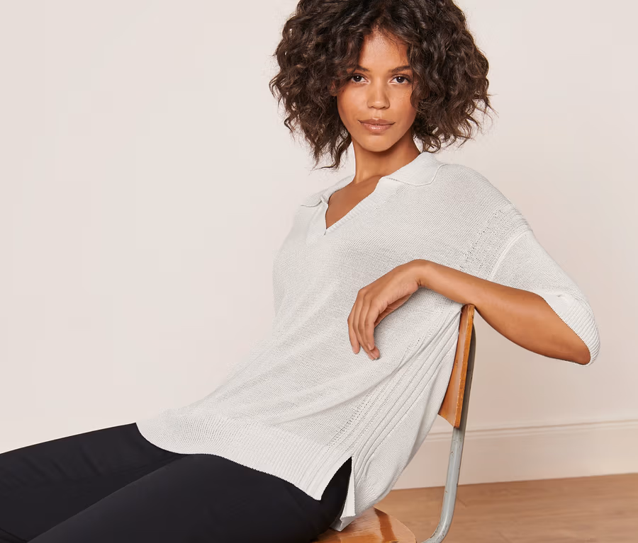 - Tiefer V-Ausschnitt mit Polokragen