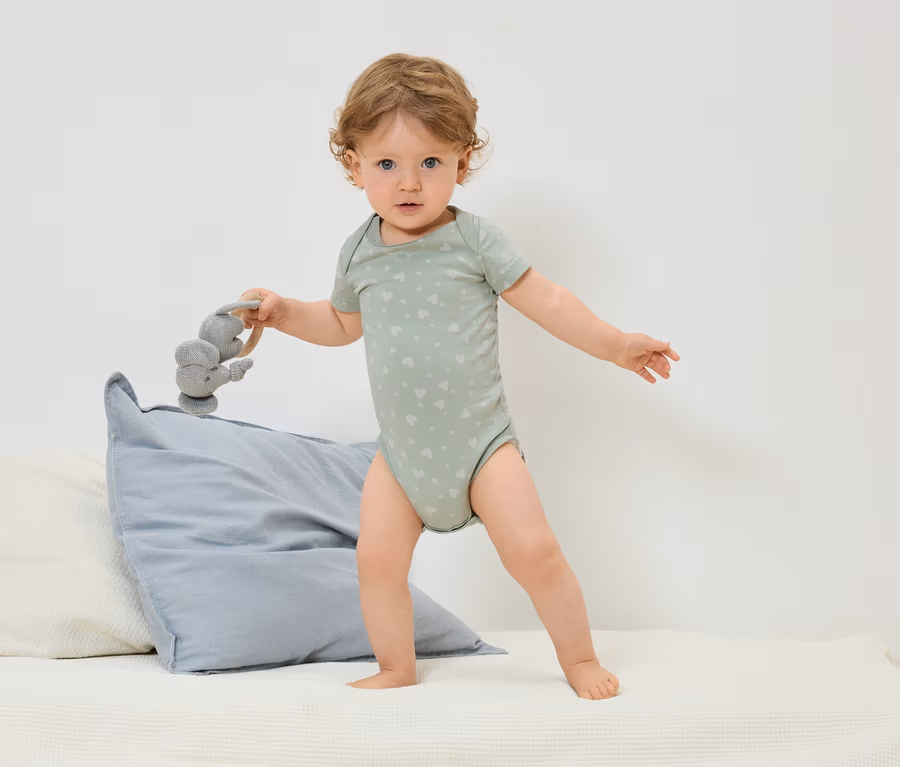 5 Baby-Bodys mit Mitwachsfunktion, Herzen