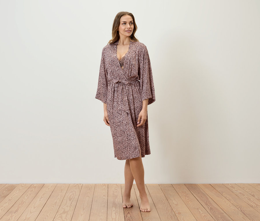 - Dieser Morgenmantel beinhaltet Fasern aus nachhaltigem Holz.