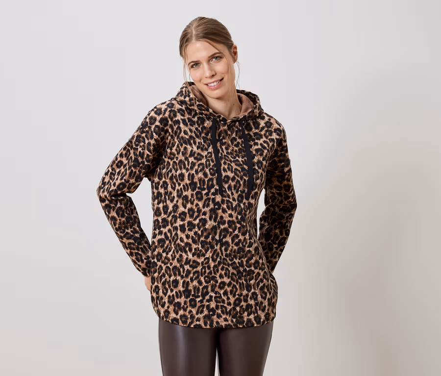 Langes Kapuzensweatshirt mit Leo-Alloverprint