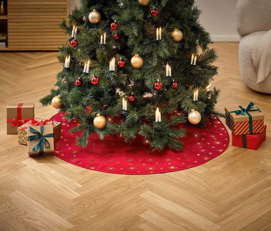 - Verdeckt Weihnachtsbaumständer, Kabel, etc. – heruntergefallene Tannennadeln werden aufgefangen