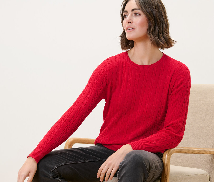 - Elastische Rippbündchen an Ausschnitt, Ärmelabschluss und Saum