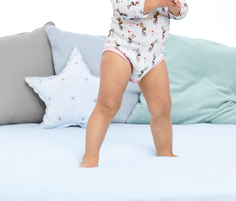 • Gr. 74/80 ‒ 98/104: Schlupfform und Druckknöpfe im Schritt