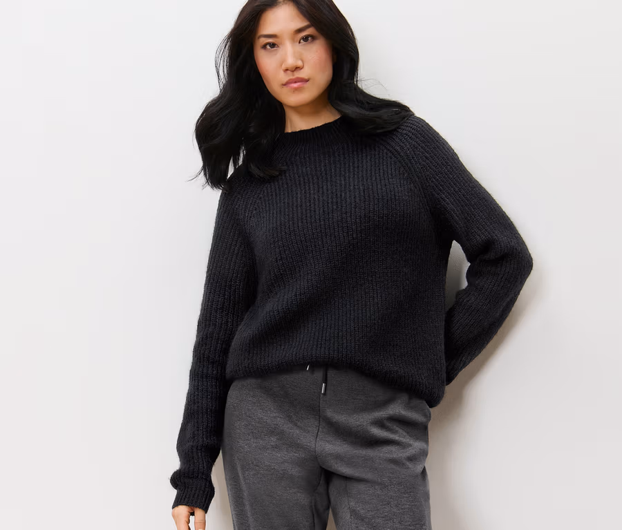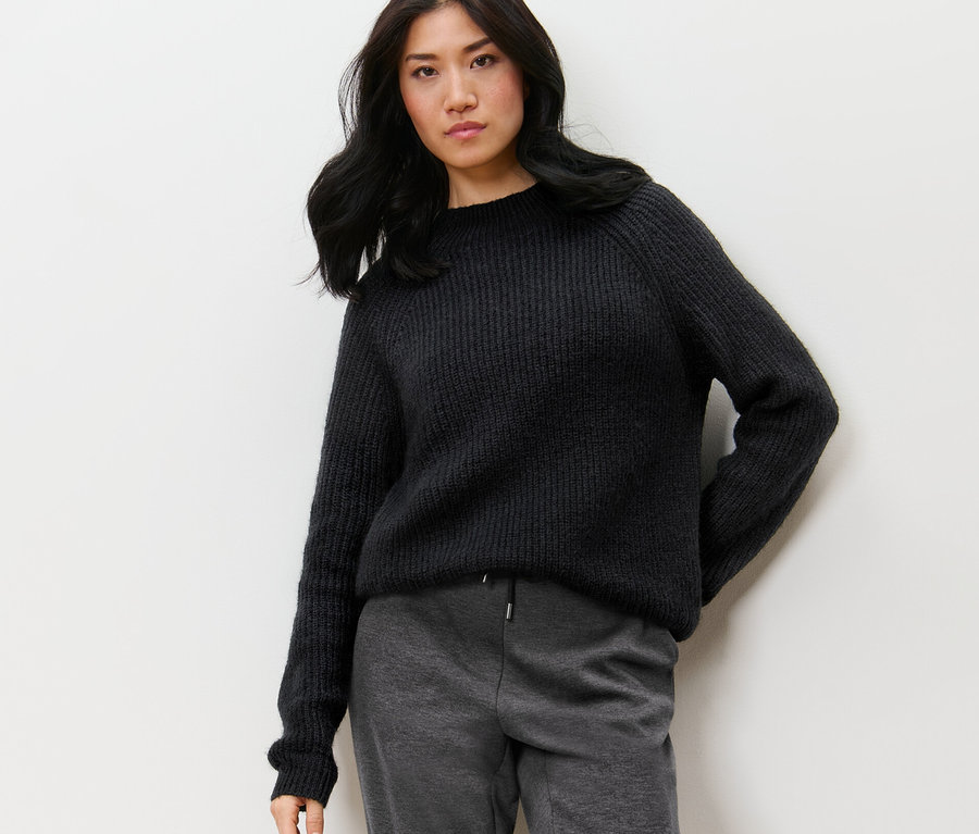 Grobstrickpullover mit Stehkragen, schwarz