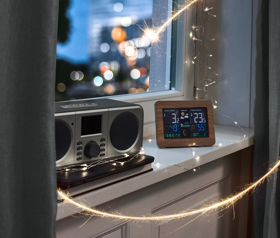 - Mit 5-Tage-Wettervorhersage, Uhrzeitanzeige, Weckfunktion und Sleeptimer