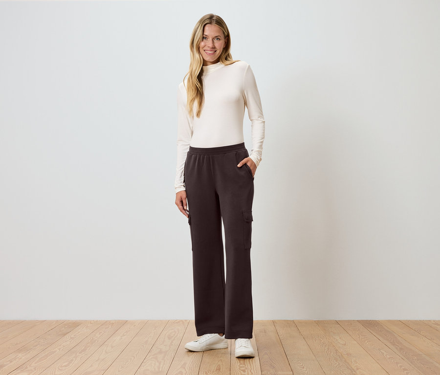 - Seitliche Cargotaschen mit Druckknöpfen auf den Oberschenkeln