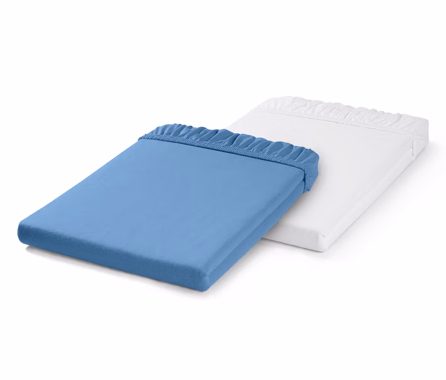 Diese beiden Spannbettlaken sind deshalb aus reiner, hautsympathischer Baumwolle in kindgerechter, weicher Single-Jersey-Qualität gefertigt. Sie sind wunderbar anschmiegsam und besonders saugfähig – für einen erholsamen Schlaf und einen guten Start in den neuen Tag.