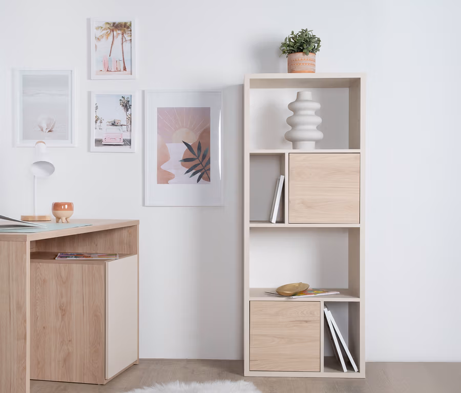 • Regal mit offenem und sichtgeschütztem Stauraum