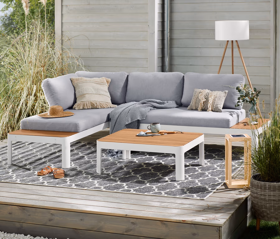 - Inkl. 2 Sofas mit je einem Sitzkissen und je 2 Rückenkissen, variabler Rückenhalterung, Tisch, Bodenschonern, Fixierklettband, Montagematerial und -anleitung