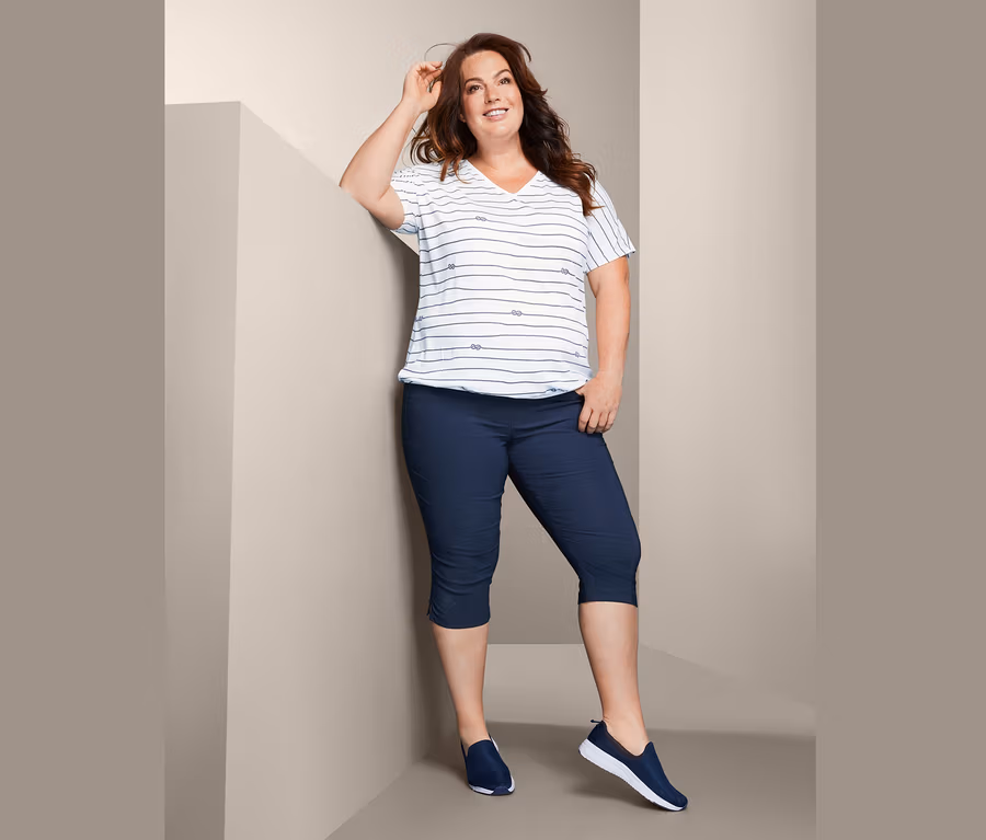 - Elastischer Bund mit Gürtelschlaufen – kein Einschnüren