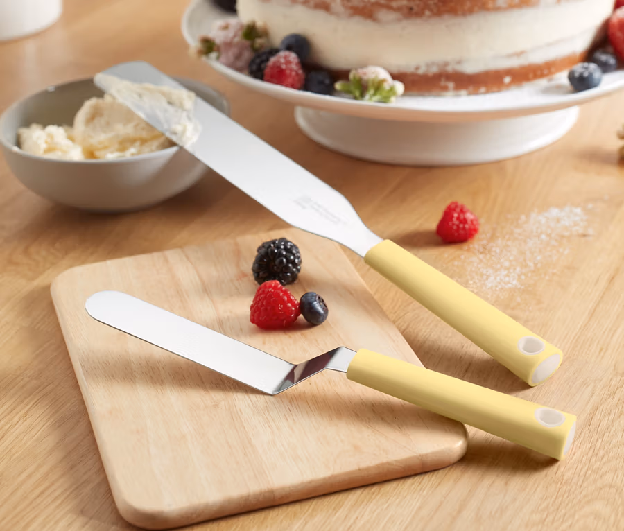 - Eine kleine, abgewinkelte Palette – ideal für filigranere Arbeiten und zum Dekorieren von Keksen oder Cupcakes