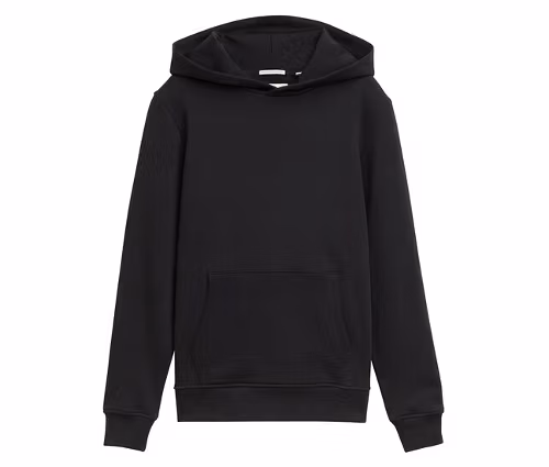 - Kängerutasche auf der Vorderseite und Rippbündchen am Ärmel