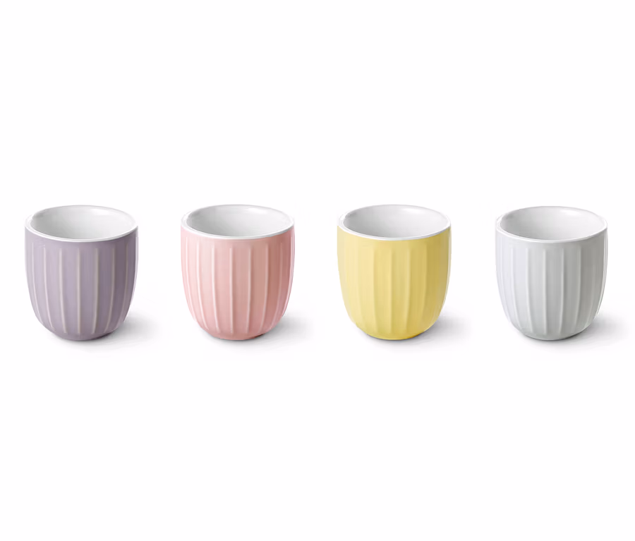 Ob wachsweich oder lieber etwas härter: Das gekochte Ei ist ein echter Klassiker auf dem Frühstückstisch – und diese Eierbecher bieten die ideale Serviermöglichkeit. Die vier Becher aus Keramik setzen mit ihren unterschiedlichen Pastelltönen bunte Farbtupfer auf dem Tisch. In die Becher passen Eier bis Größe L.
