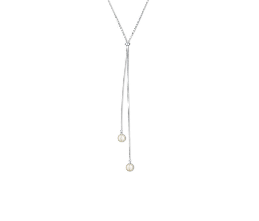 Diese zeitlos designte Kette setzt bei eleganter Garderobe ebenso einen optischen Akzent wie bei legeren Outfits. Sie hat zwei unterschiedlich lange Stränge, die mit jeweils einer Glasperle besetzt sind.